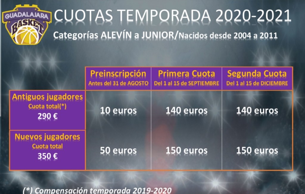 Todas las inscripciones que se realicen después del 15 de Septiembre, en el momento de hacer la inscripción, deberán enviar por correo electrónico a guadalajarabasket@gmail.com el justificante de haber ingresado la pre-inscripción y la 1ª cuota en la cuenta del club (Caixabank):