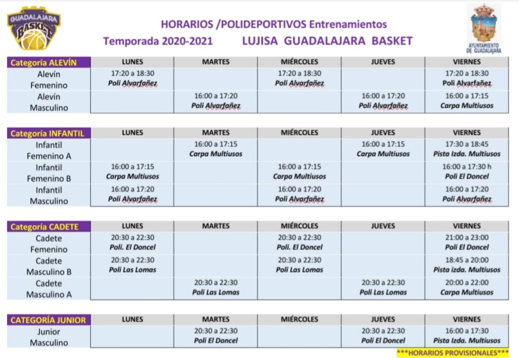 Utilizaremos todos los protocolos de seguridad que ya hemos puesto en práctica con nuestros equipos de EBA y Junior desde hace varias semanas que llevan entrenado e incluso compitiendo. Queremos agradecer al Patronato de Deportes del Ayuntamiento de Guadalajara su ayuda y colaboración indispensable para poder programar y acomodar lo mejor posible a toda nuestra cantera de 8 a 17 años en distintos polideportivos y horarios.