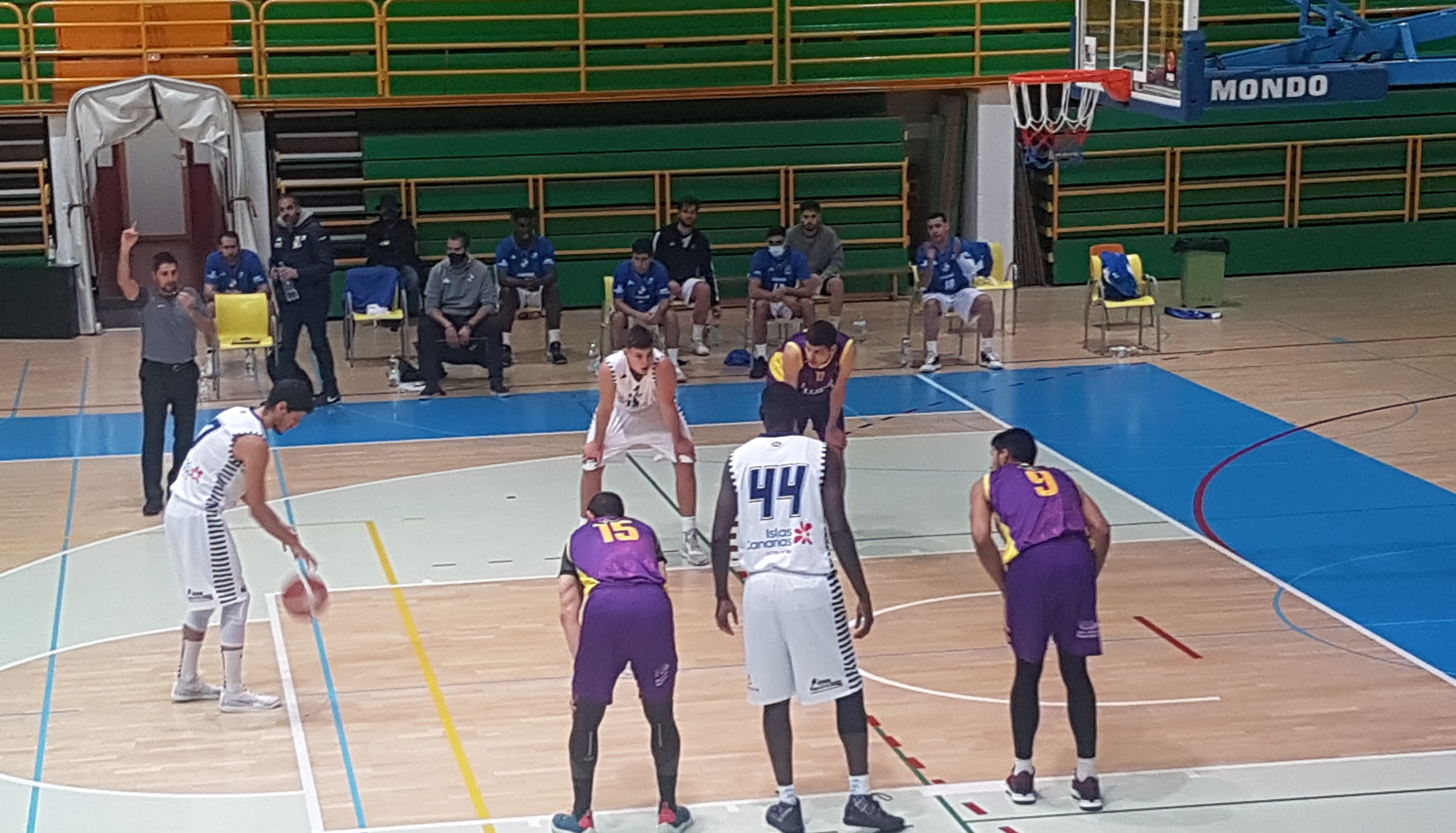 El encuentro comienza con canasta rápida, tras el salto inicial, de Guillermo González. Aunque seria un cuarto igualado con muy baja anotación(12-13) con numerosos fallos en ataque por ambos equipos, imponiéndose las defensas. En el segundo cuarto los morados no consiguen mejorar su juego, continuando la igualdad hasta los instantes finales donde los visitantes con un parcial de 0-7 llevan el luminoso a un 24-32.