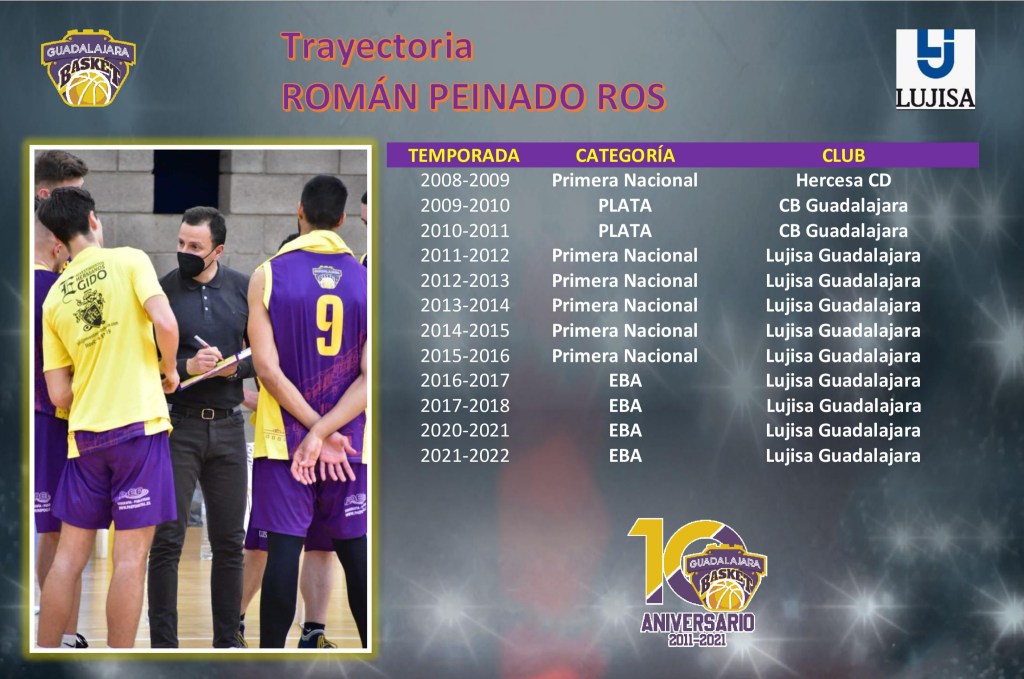 Román inició su andadura en el club en la temporada 2011-2012, tras entrenar las dos anteriores en el Rayet Guadajara de LEB PLATA, con el equipo cadete masculino logrando de forma brillante el campeonato regional de la categoría. Su primera temporada en el banquillo del primer equipo morado fue la 2012-2013 en Primera Nacional hasta la 2015-2016 en la que consiguió el campeonato de liga y copa, sin conocer la derrota, así como el merecido ascenso.