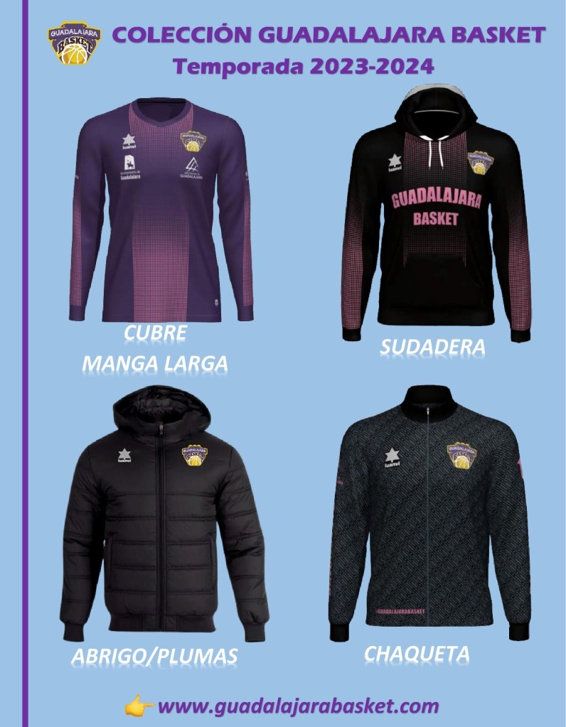 También podrá adquirirse, de forma voluntaria, cualquier otra prenda que compone la colección deportiva del club como chándal, sudadera, camiseta manga larga, etc. Además, iremos completando la colección con más accesorios que completarán la equipación deportiva de Guadalajara basket.